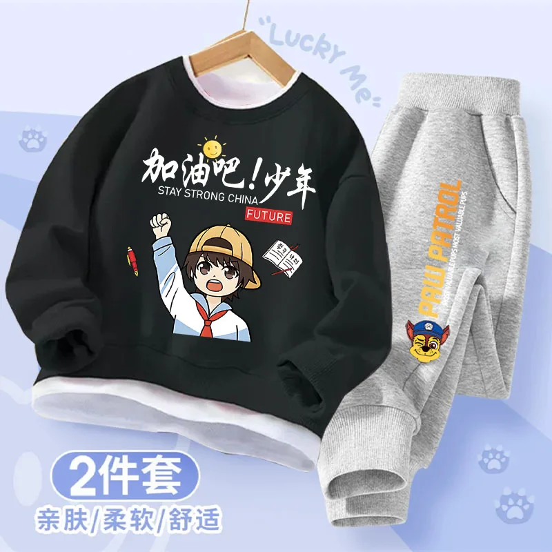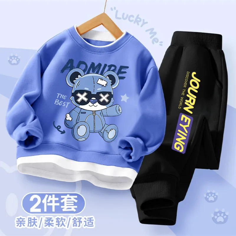 Children's Fall and Winter Clothing Sets Boys Thin Sweater and Sweatpants with Sports Suit Trendy Tops for Kids